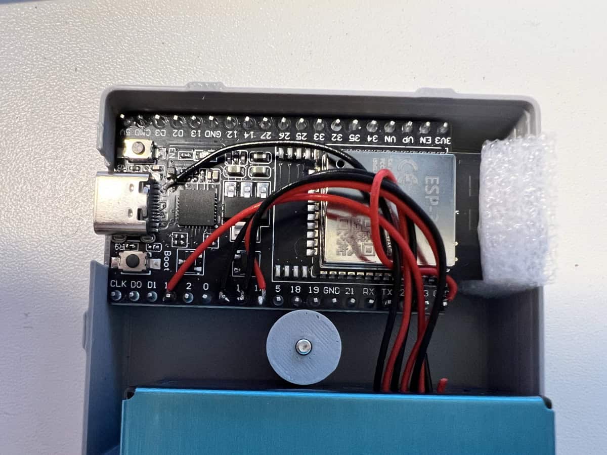 Voor de microcontroller gebruikte ik een ESP32 DevKitC, maar in principe is elk ESP32-bordje geschikt.