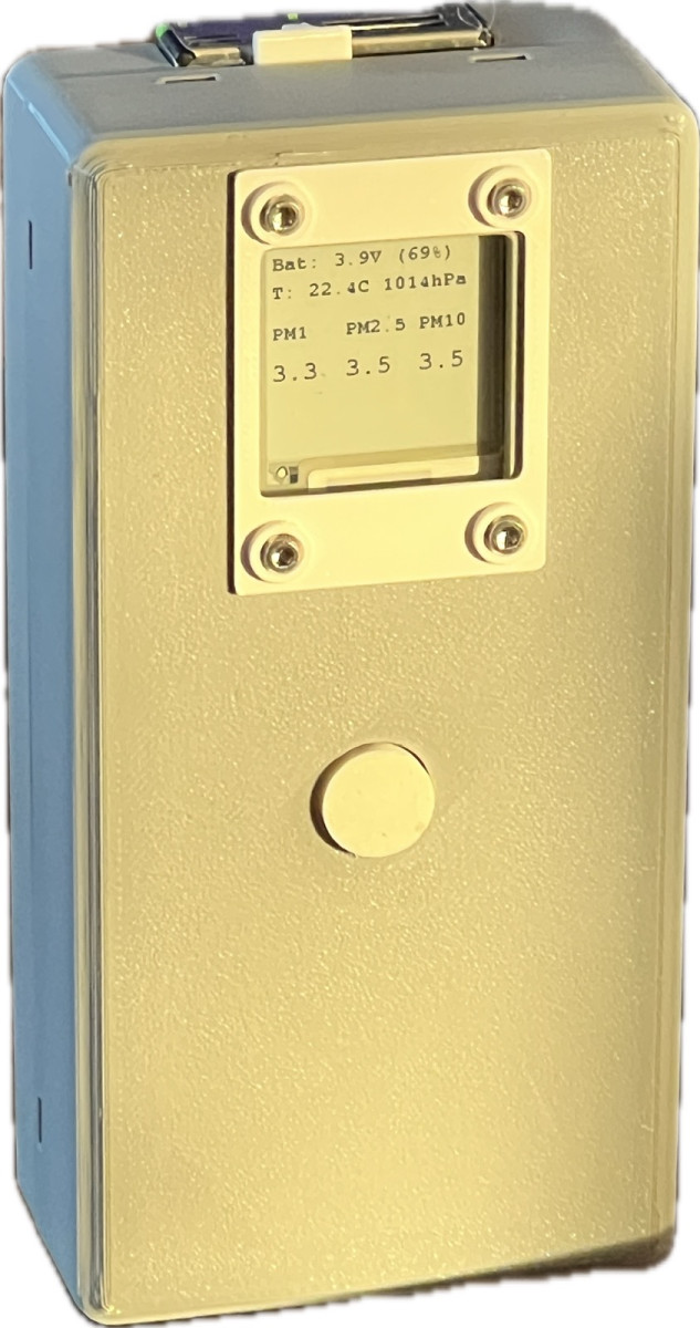 Het resultaat is een handheld fijnstofmeter op basis van een ESP32 en een Sensirion SPS30-sensor met e-Paper-display. Het apparaat is bedoeld om even snel ergens een meting te doen: buiten op straat, in huis, bij een open raam of bijvoorbeeld in een werkplaats. Omdat het apparaat op een accu werkt is het echt een draagbaar, “handheld” apparaat.