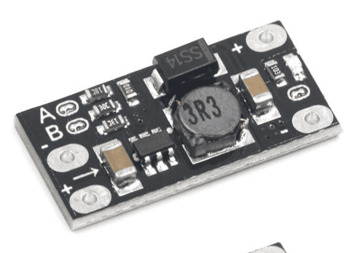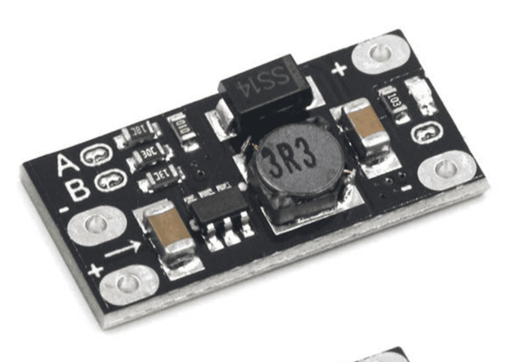 - a step-up converter module that converts the voltage from the 18650 (~2.5 V – 4.2 V) into a stable 5 volts
