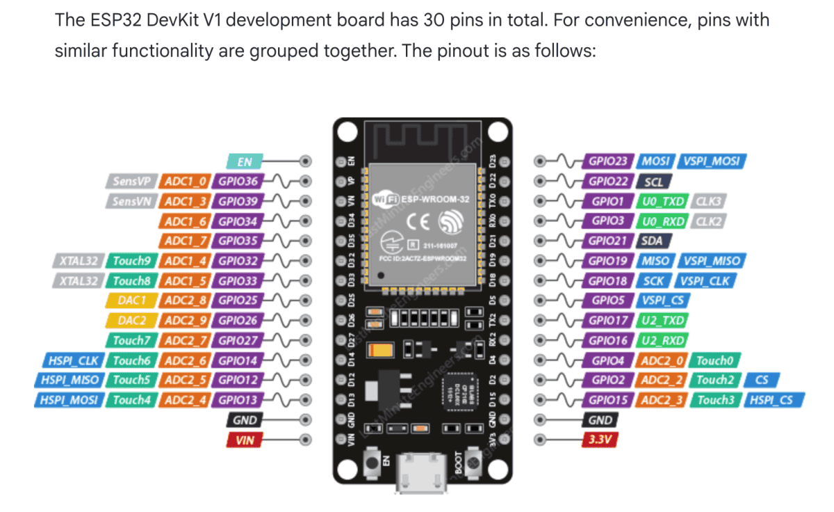 There are literally dozens of different ESP32 boards available. For this project and the PCB I based the design on a 30-pin ESP32-DevKit-V1 board.