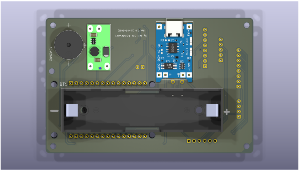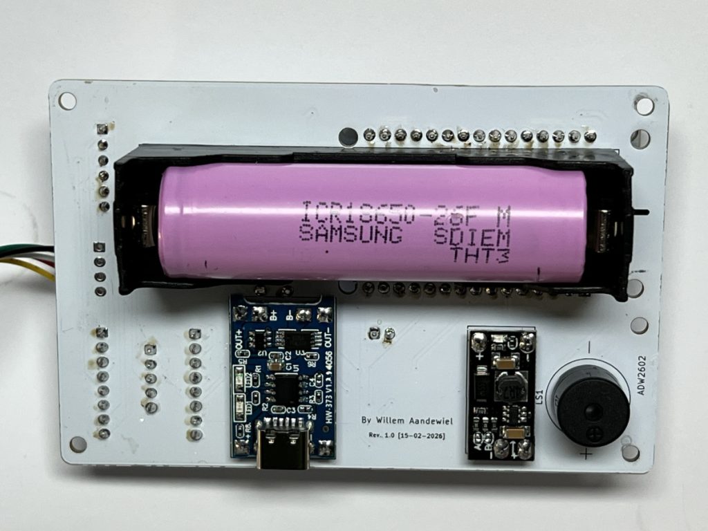 For example, when starting up and just before shutting down the ESP32 measures the voltage of the 18650 cell and displays it. This is important because a Li-ion battery can be permanently damaged if the voltage drops below 3 V.