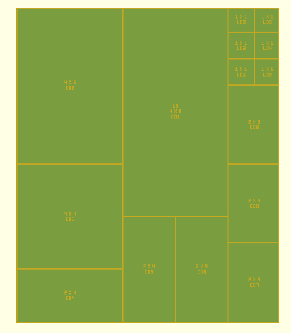 Alles gebeurt op basis van een gridsize. Alle vakken zijn veelvouden daarvan.