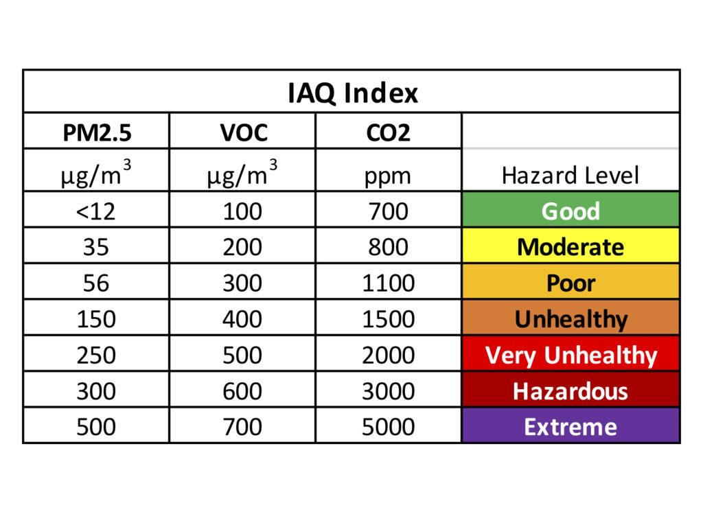 Meet de gassen die, onder andere, door schoonmaakmiddelen, verf, lijm, parfum en deodorant worden afgegeven. Het is dus een indicatie over hoeveel “chemische luchtjes” er in de lucht zitten.