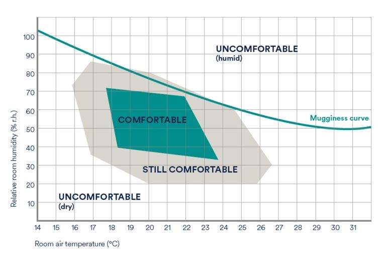 Indicates how well a space is ventilated. It shows how much exhaled air is present in the measured space. A high value means stuffy air (open the windows).